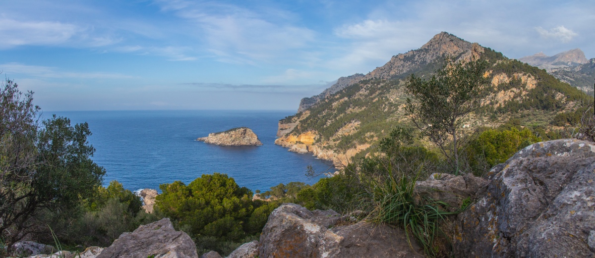 Traumhafter Blick oberhalb des Cap des Fabioler die Nordwestküste Mallorcas entlang: