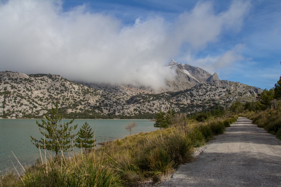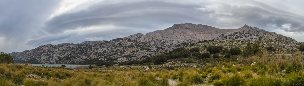 Beeindruckende Wolkenformationen am Cúber-Stausee (rechts der Puig Major, mit 1436 m der höchste Gipfel Mallorcas):