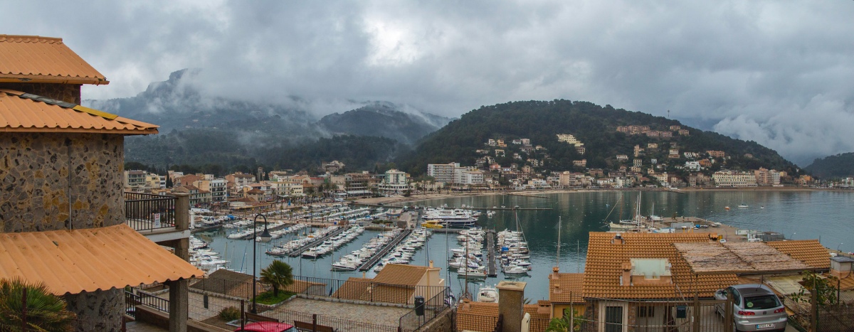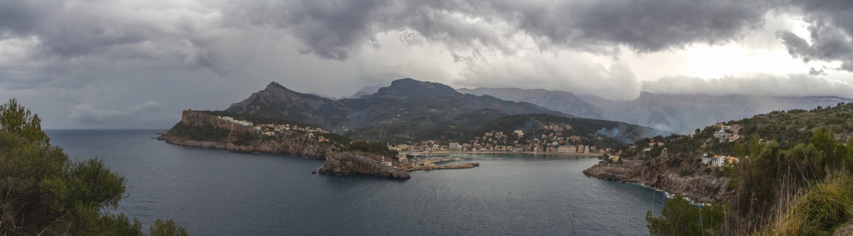 Blick auf Port de Sóller mit bedrohlicher Wolkenstimmung: