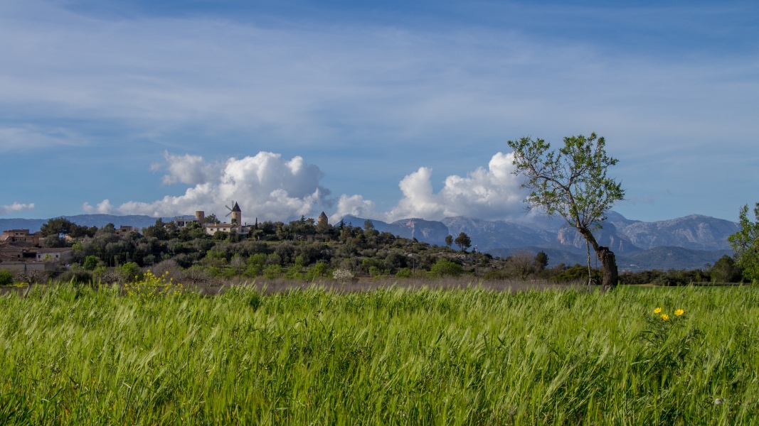 Malerischer Blick auf Santa Eugènia - fotografiert aus dem fahrenden Auto: