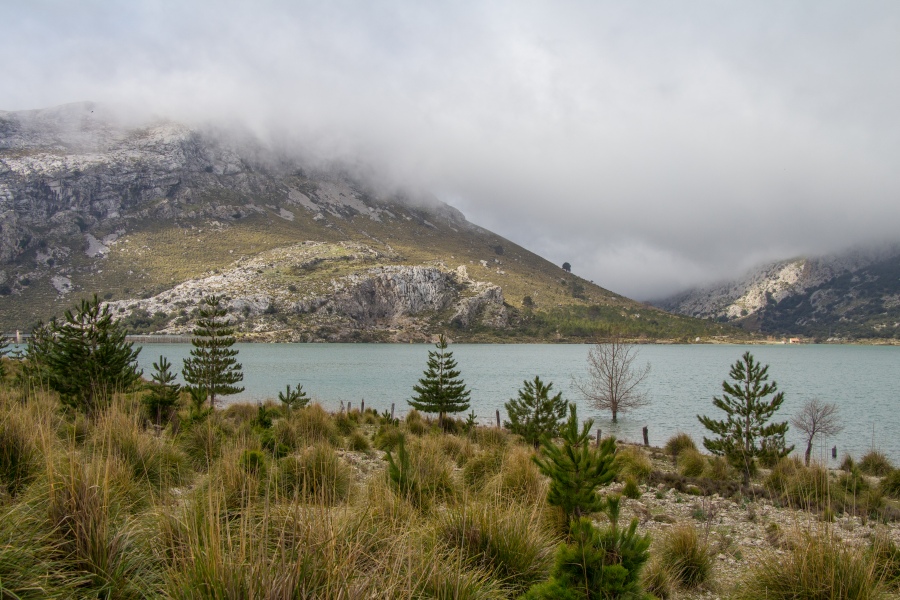 Szenenwechsel: am nächsten Morgen am Cúber-Stausee - noch wabern tiefe Wolken durchs Gebirge.