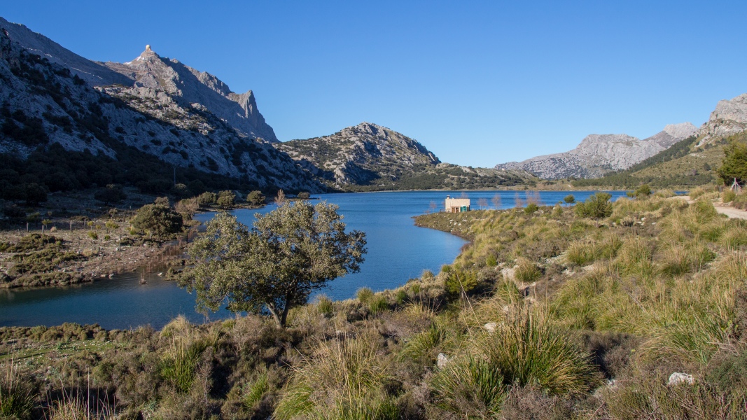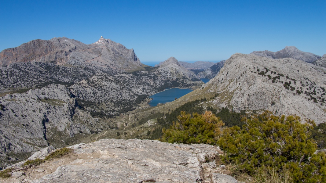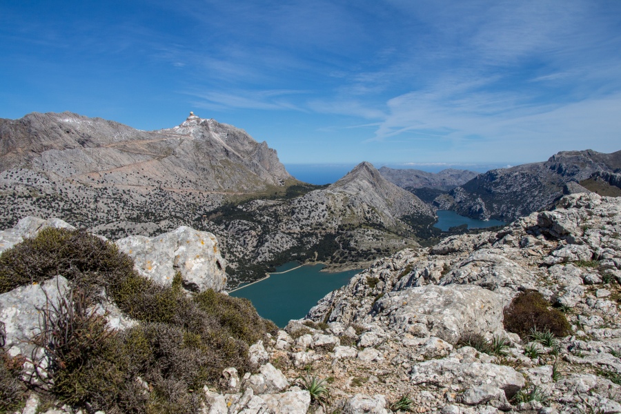 Fantastischer Ausblick von der Rateta (1113 m) auf den Puig Major und die beiden Stauseen Cúber und Gorg Blau: