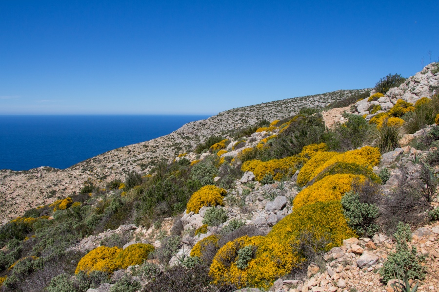 Tiefblauer Himmel, tiefblaues Meer und der leuchtend gelbe Ginster: